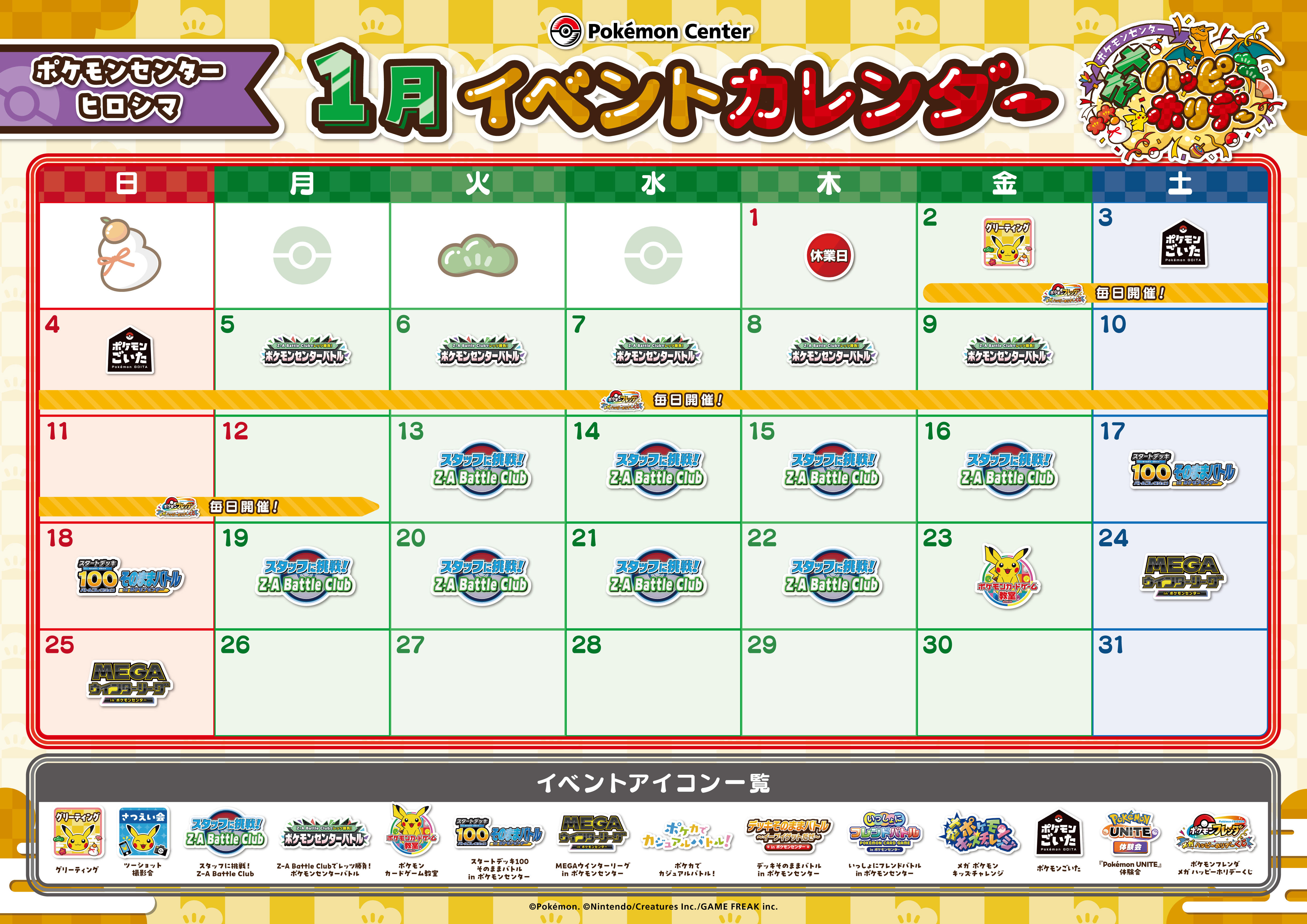 ポケモンセンターヒロシマのイベントスケジュールは、下記をご確認ください。