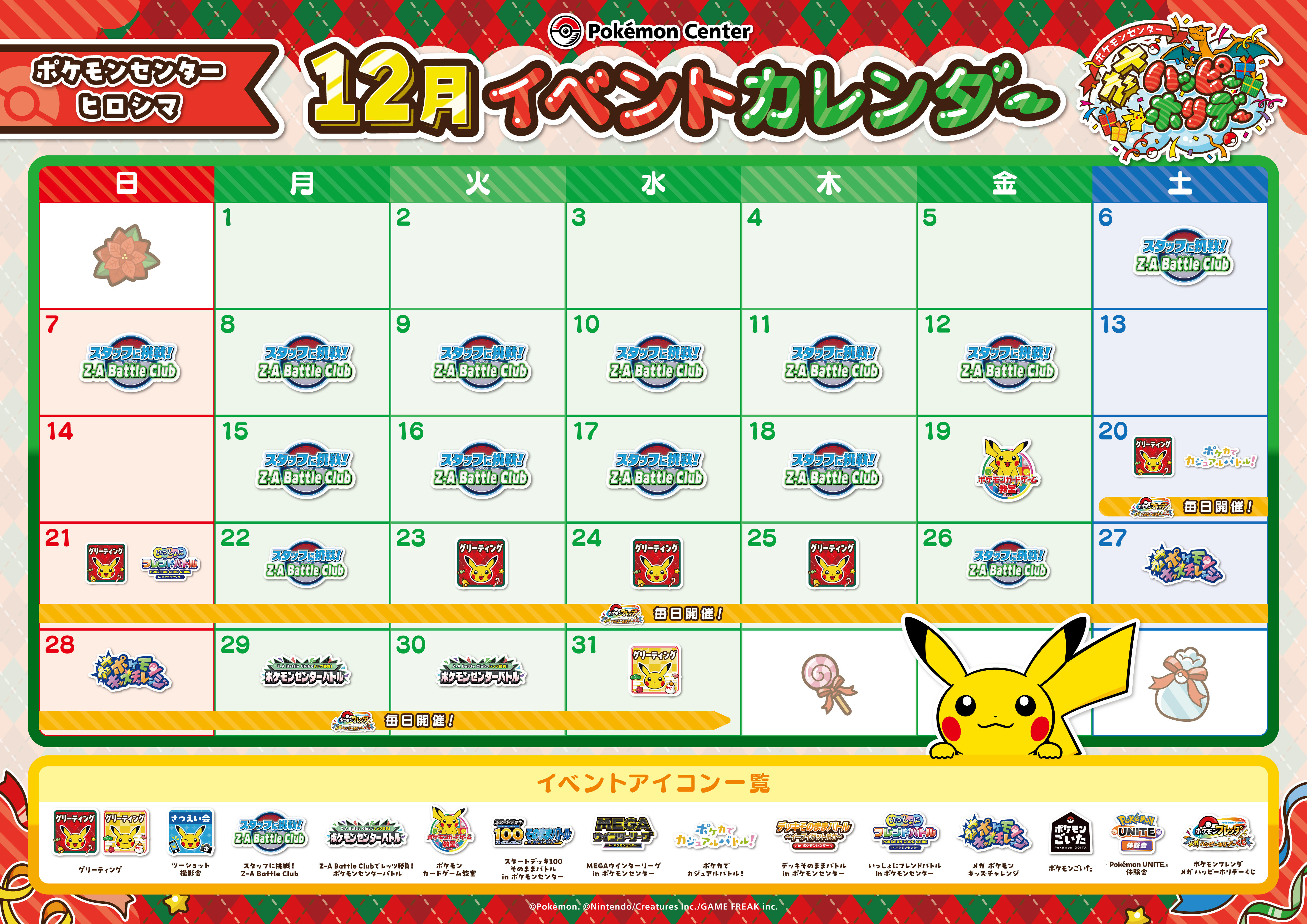 12月23日(火)、12月24日(水)、12月25日(木):ポケモンセンターヒロシマ