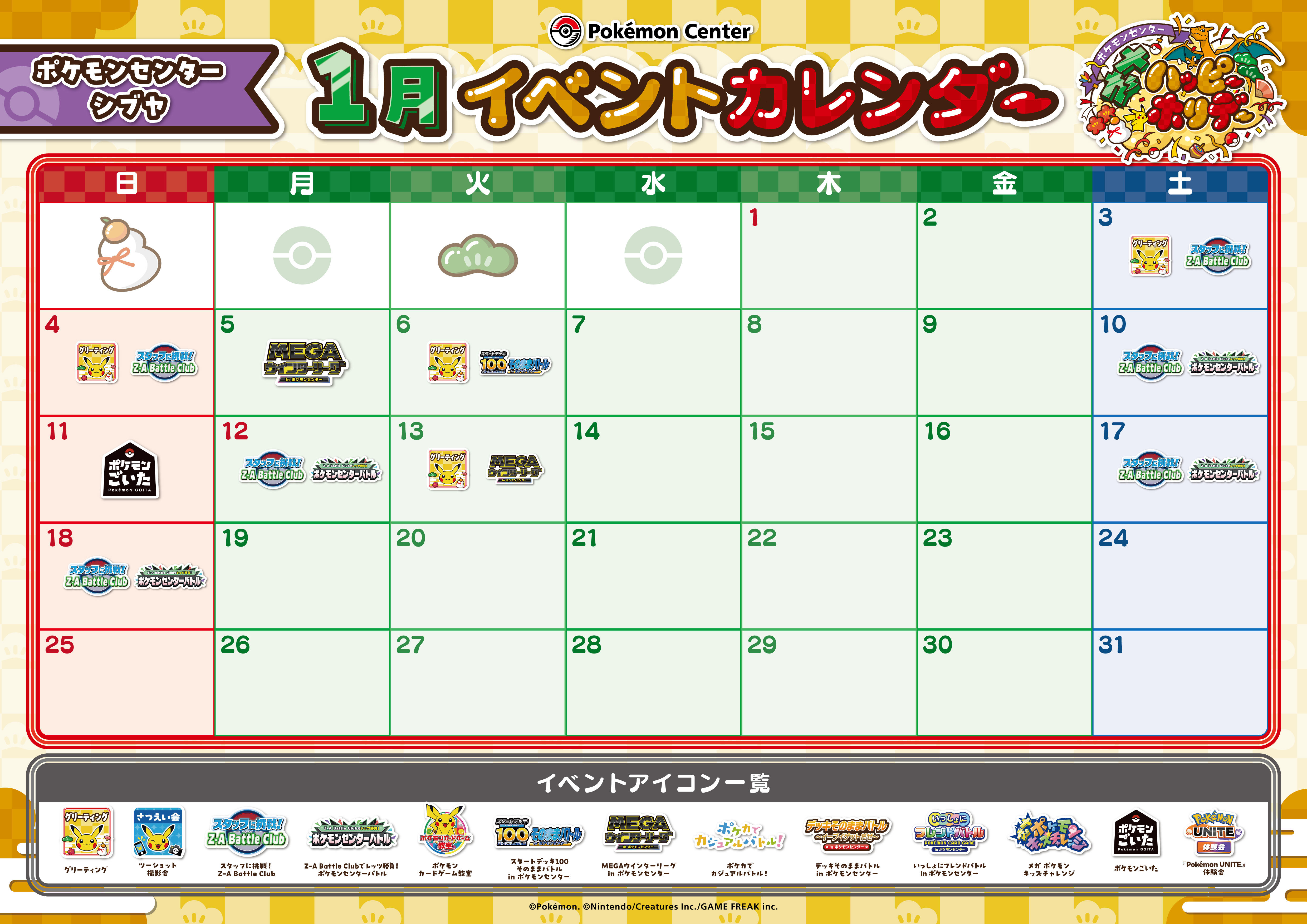 ポケモンセンターシブヤのイベントスケジュールは、下記をご確認ください。