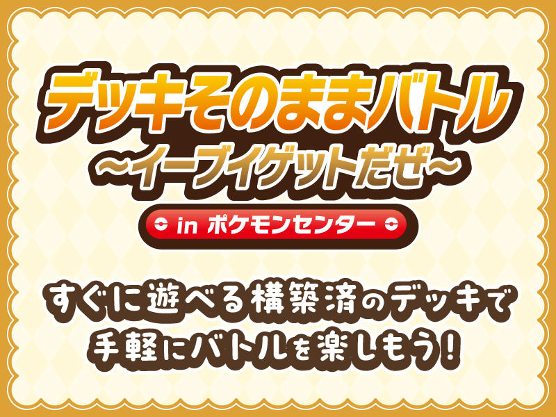 これからポケモンカードゲームのバトルをはじめたい小学生以下のお子様へ、楽しくポケモンカードゲームを体験いただけるイベントです。