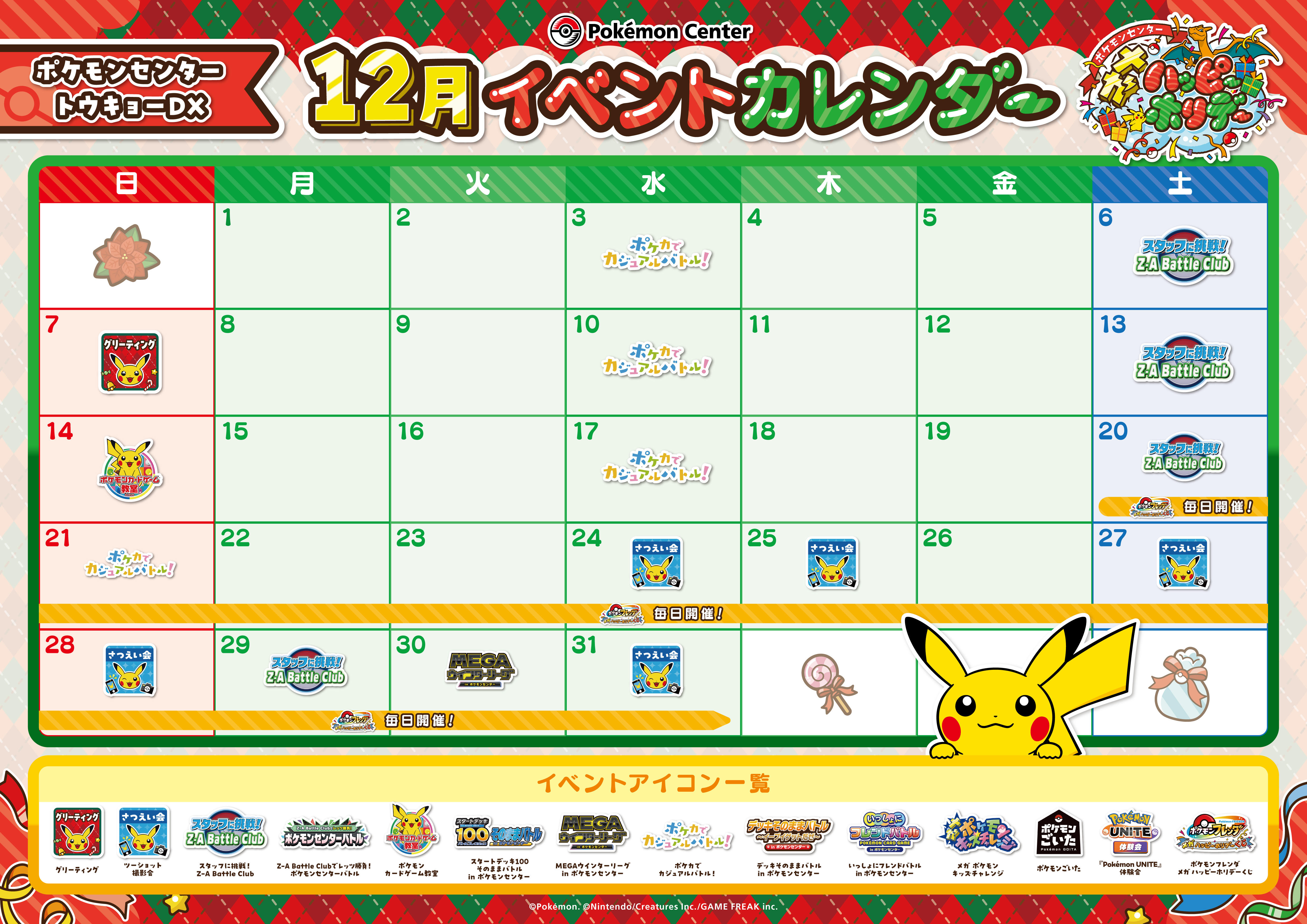 ポケモンセンターでは、ホリデーをメガハッピーにたのしめるイベントがたくさん!
