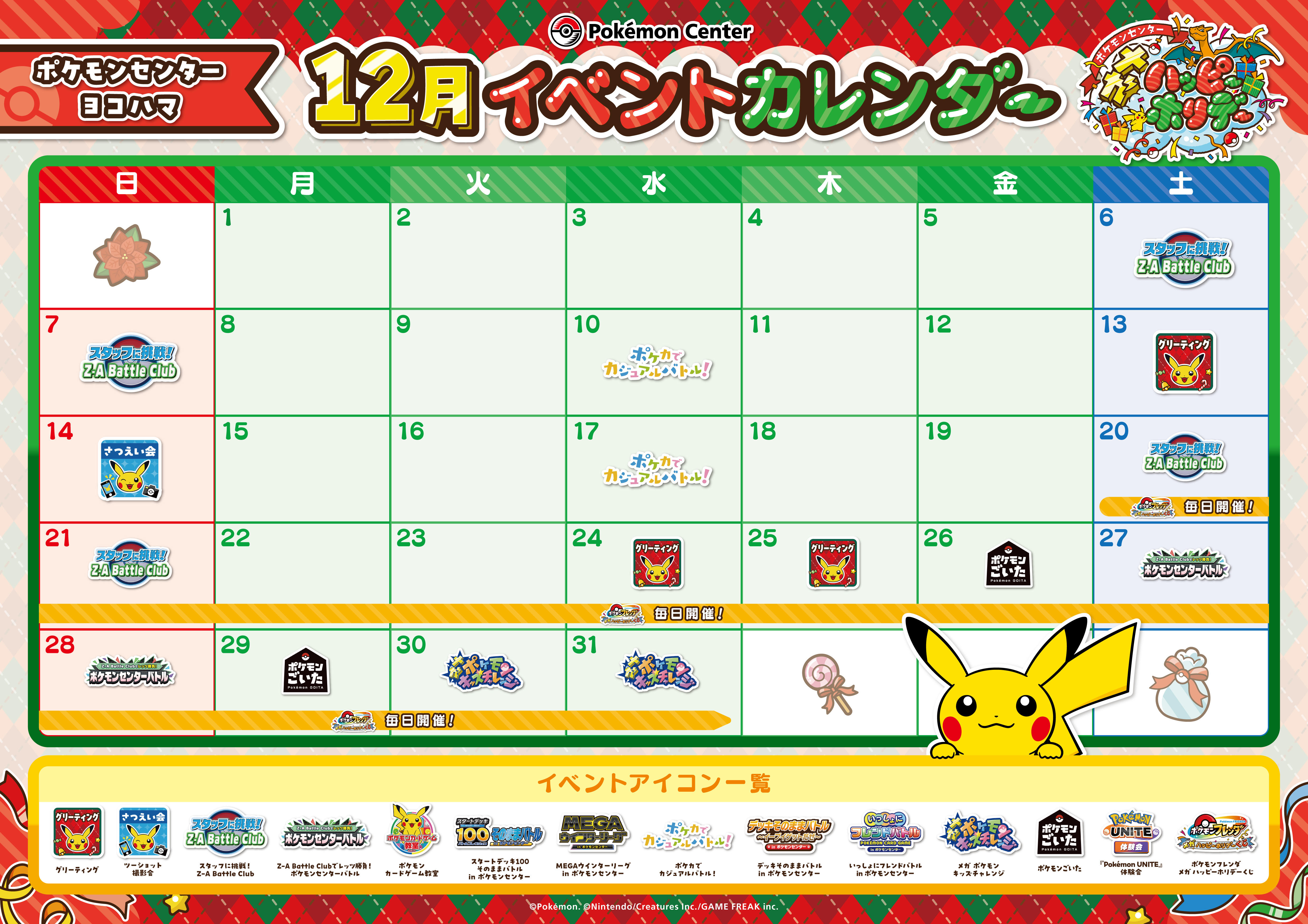 ポケモンセンターでは、ホリデーをメガハッピーにたのしめるイベントがたくさん!